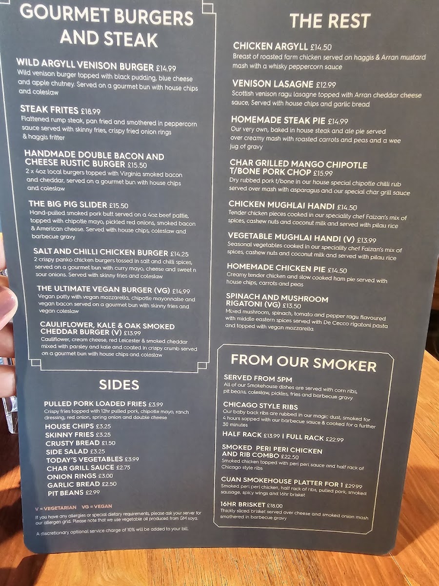 Welcome to Cuan Mor, a culinary gem nestled in Oban, Scotland. Known for its diverse and flavorful offerings, Cuan Mor serves everything from mouthwatering burgers to delectable ribs. Among the highlights, you'll find: